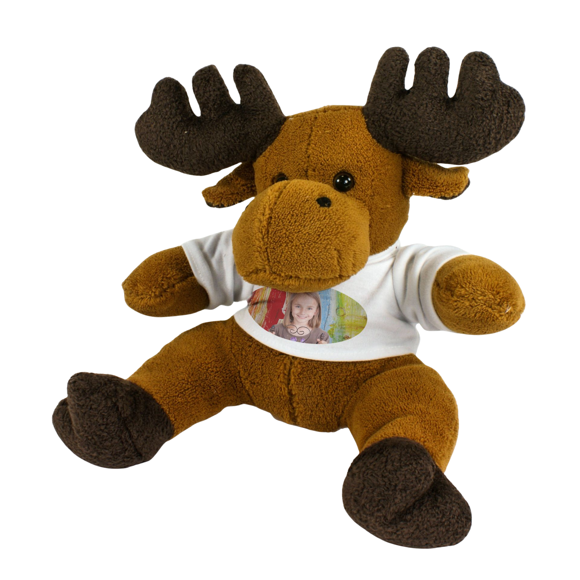 Elch KnutBedruckt mit einem persönlichen Foto oder Namen auf dem Shirt sind Kuscheltiere das ideale Geschenk!