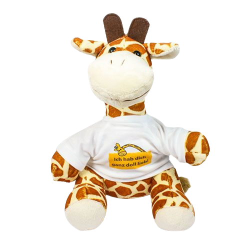 Giraffe HelgaBedruckt mit einem persönlichen Foto oder Namen auf dem Shirt sind Kuscheltiere das ideale Geschenk!